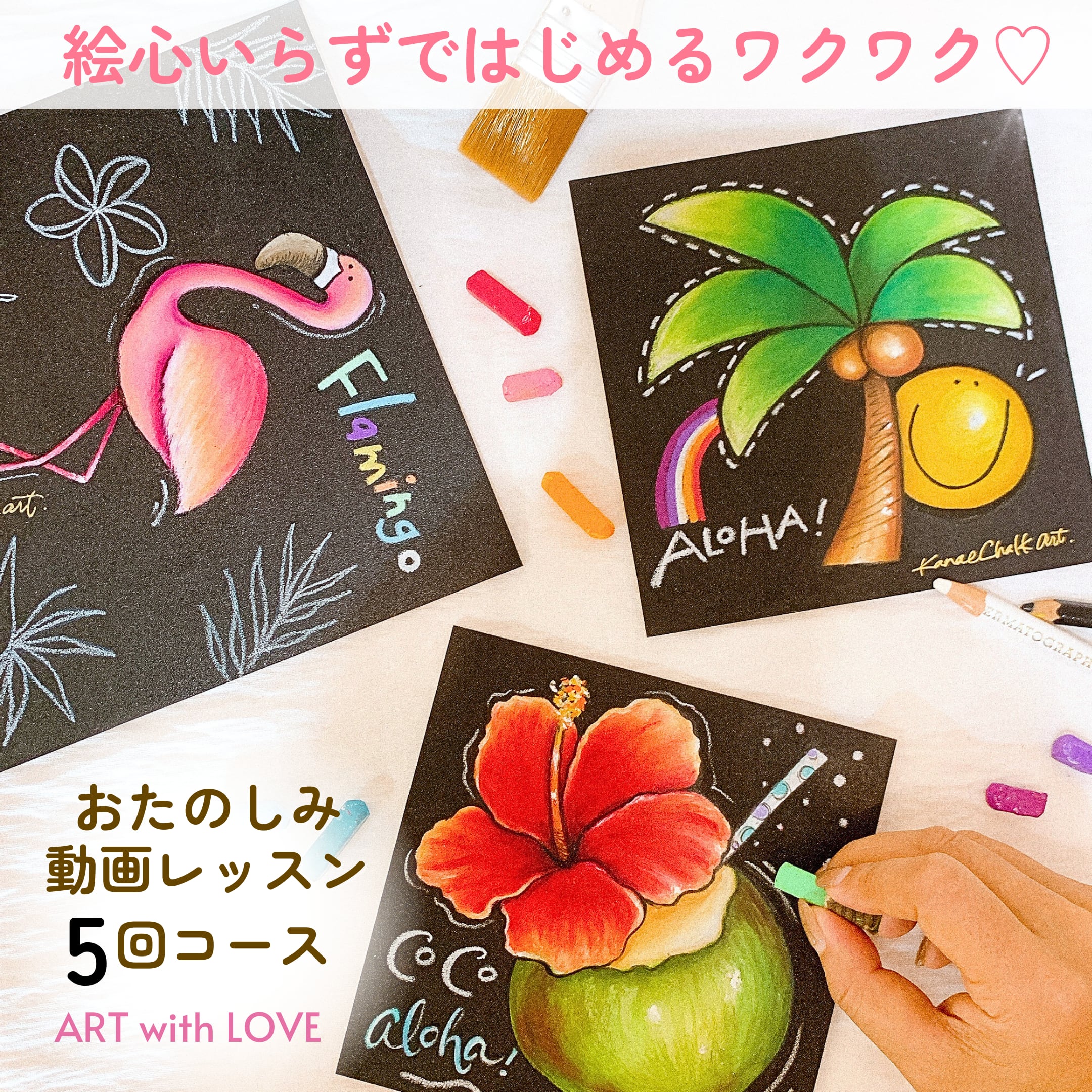【送料無料・画材セット付】おたのしみ動画講座「5回コース」私だけの趣味時間♪