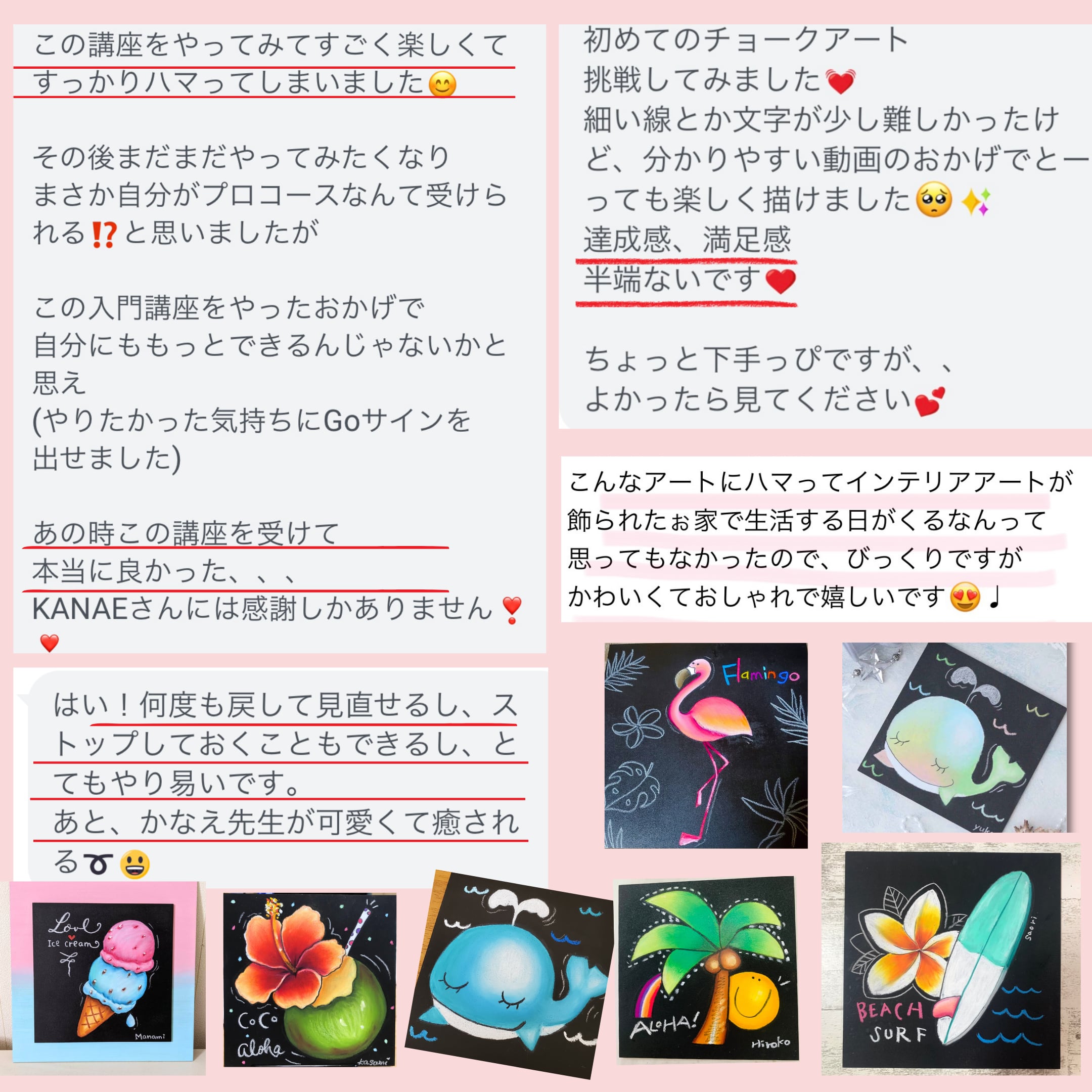 このコースでは、チョークアートの基本的な技術が学べる